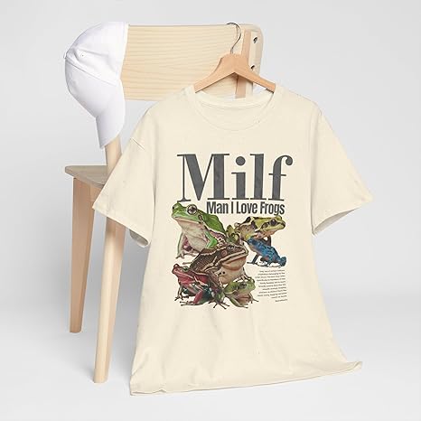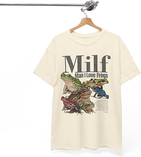 - Vintage Humor with a Meme Twist This “Man I Love Frogs” T-shirt brings together vintage design and modern meme culture for a look that is bold, ironic, and instantly recognizable. The frog graphic is retro-styled with a nostalgic print that appeals to Gen Z humor and internet-savvy fashion. Whether worn casually or as a funny statement piece, this shirt is ideal for those who appreciate smart, slightly offbeat humor and want to wear it loud and proud.
